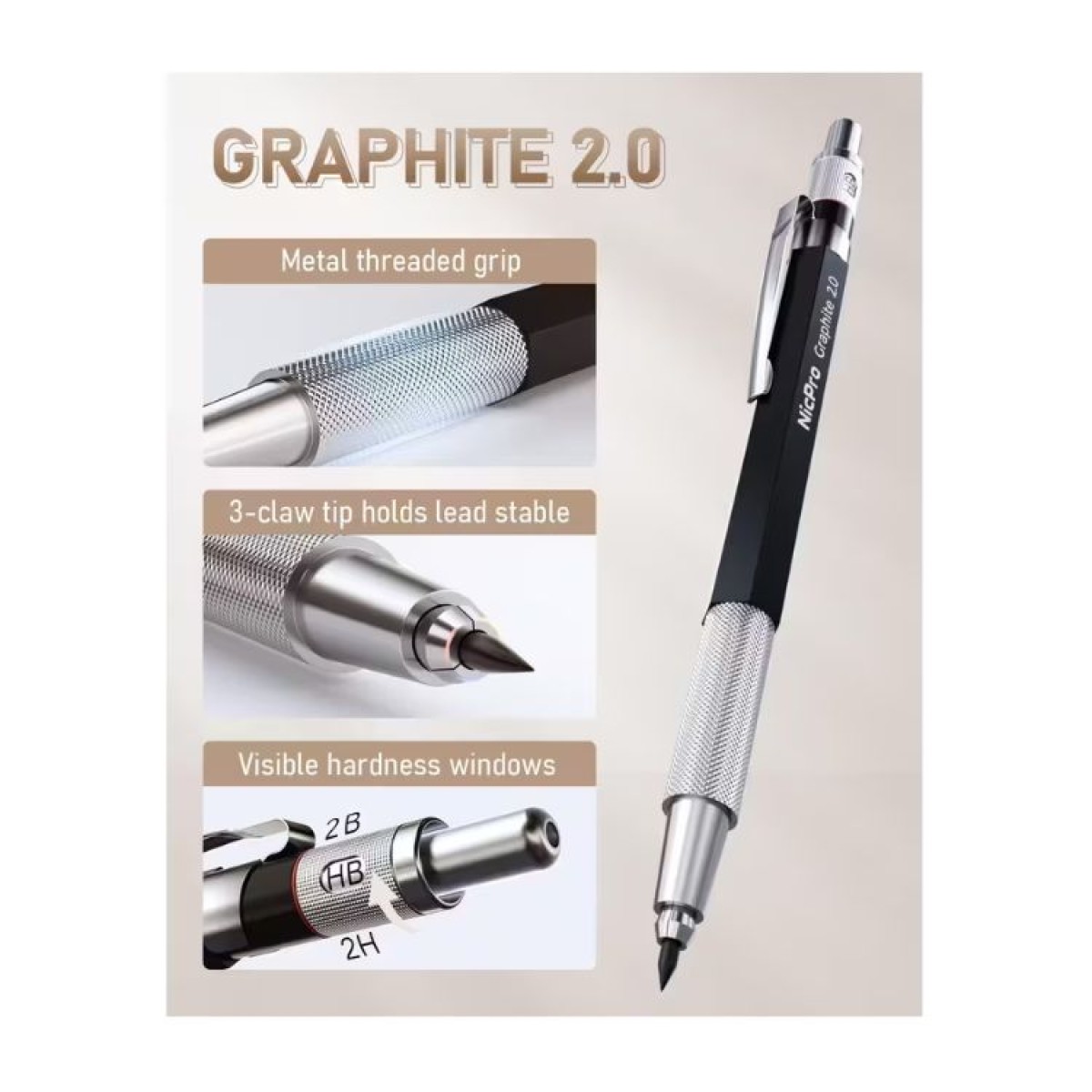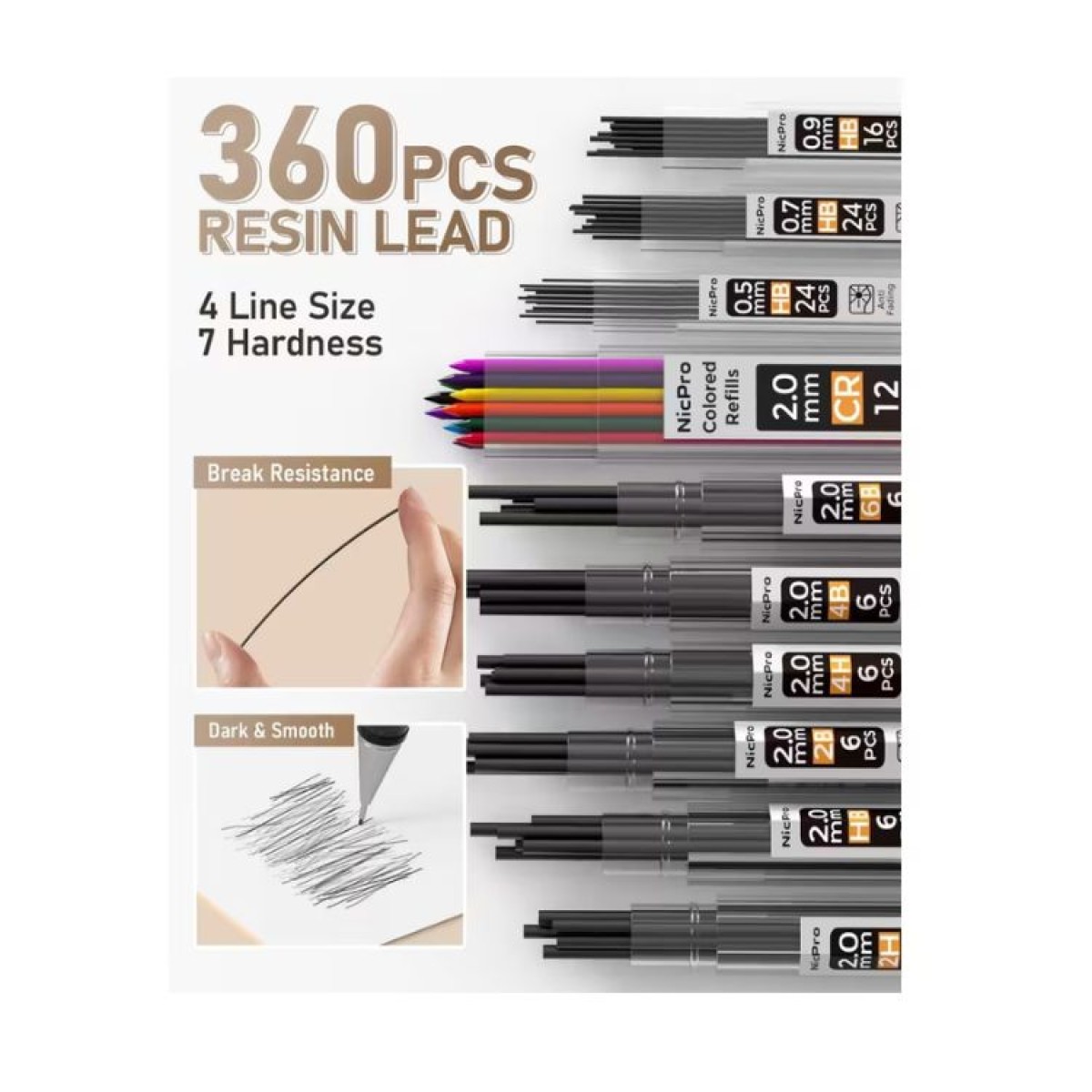 20× 2,0 mm Minen in 6 Härtegraden: 6B, 4B, 2B, HB, 2H, 4H