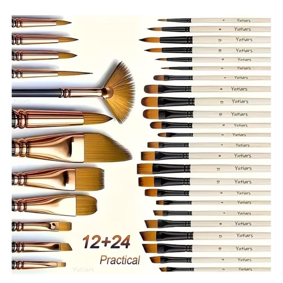 Vielseitiges 36-teiliges Künstlerpinsel-Set für Aquarell, Acryl und Ölmalerei. Formstabile Synthetik-/Nylonborsten liefern sauberen Farbauftrag von feinen Details bis zu breiten Flächen. Ergonomische Holzgriffe liegen sicher in der Hand und ermöglichen präzises Arbeiten auf Leinwand, Papier und Karton – ideal für Hobby, Studium, Atelier und Schule.