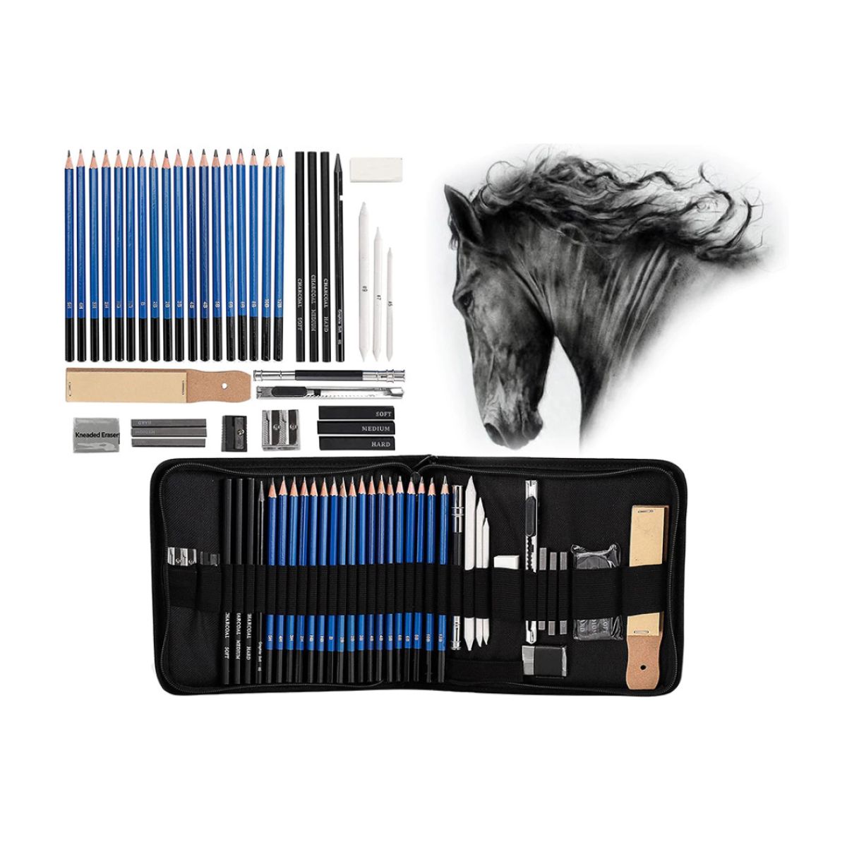 Das professionelle 32-in-1 Skizzen- und Zeichen-Set ist ideal für Künstler, Hobbyzeichner und Einsteiger, die hochwertige Zeichenmaterialien benötigen. Mit einer umfangreichen Auswahl an Bleistiften, Kohlestiften, Graphitstiften und Zubehör bietet dieses Set alles für detailreiche Skizzen, Schattierungen und kreative Illustrationen. Das praktische Etui mit Reißverschluss sorgt für eine sichere Aufbewahrung und einfache Organisation aller Materialien.