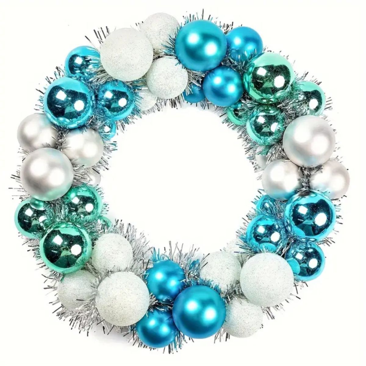 Eleganter Weihnachtskranz Ø 33 cm in Blau & Silber mit edlem Glitzereffekt. Langlebiger, wetterfester Kunststoff für dauerhaft schöne Form und brillanten Kugelglanz. Ideal als Türkranz, Wand-/Fensterdeko oder kompaktes Tisch-Centerpiece – stromlos und sofort dekorationsbereit.